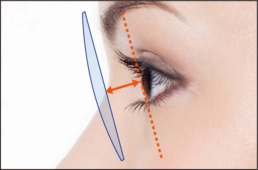 普通眼鏡架的傾斜角度適中,更易於觀察。但是,當您看著物體時,眼睛一直在運動,因此光線與鏡片成一定角度入射。結果,來自晶狀體的光線不能正確地成像在視網膜上。