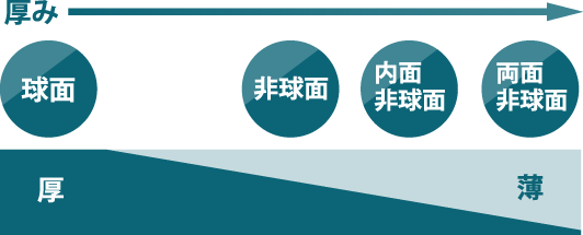 高規格鏡片設計有兩種類型:非球面內面設計(其中鏡片表面為球形,而背面為非球面)和雙面非球面設計(其中鏡片的兩個表面均為非球面)。
