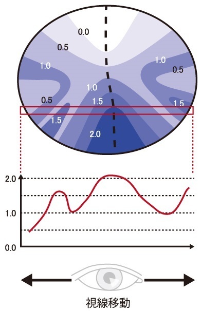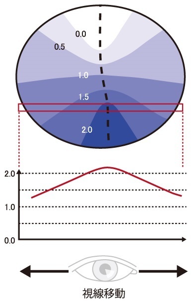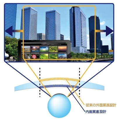 另一方面,FFi系列的內面漸進鏡片具有平衡的表面曲線。內面的漸進設計不會受到表面曲線的任何干擾,因此設計的自由度增加了,並且精度提高了。