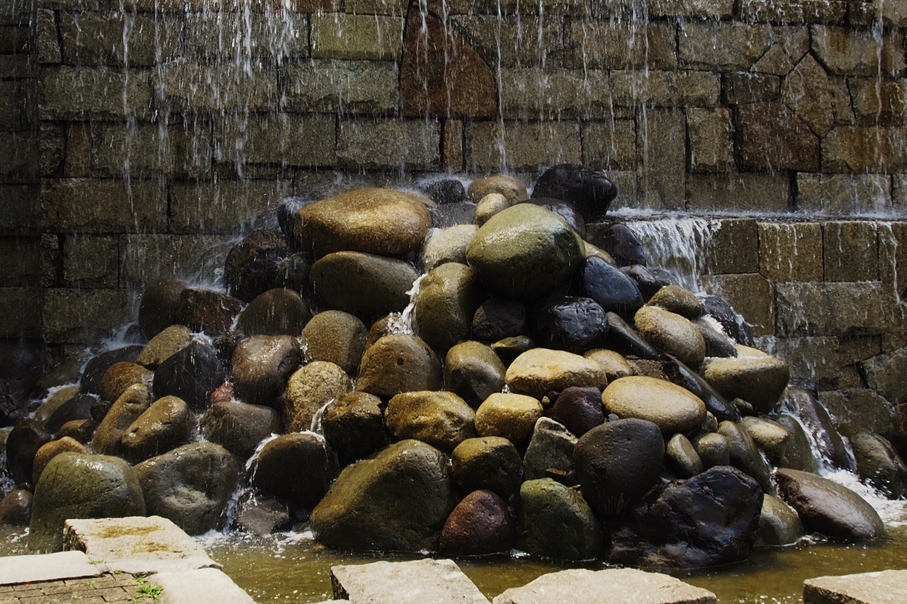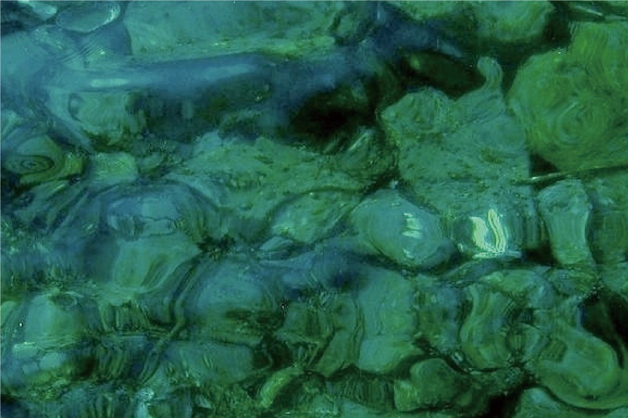 在照片②中,偏光鏡消除了由於飛濺而引起的光的不規則反射,並且可以清楚地看到石頭的顏色。
