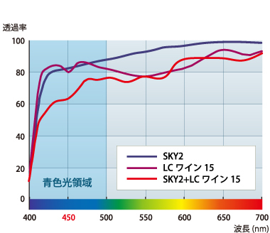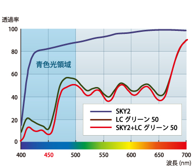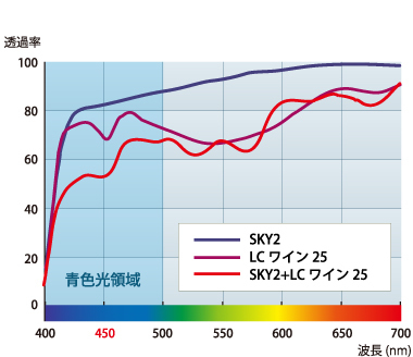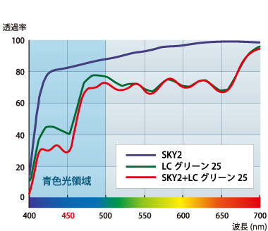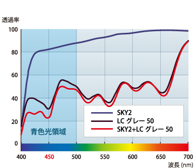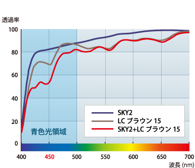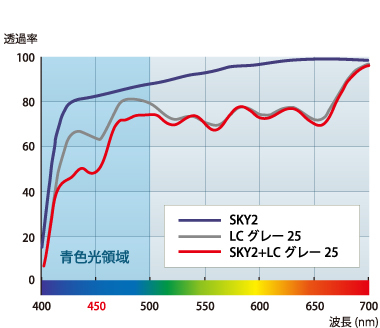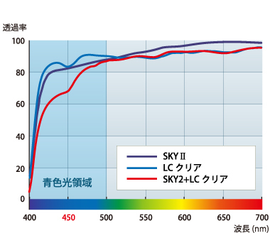 □平均藍光截止率是在折射率為1.60(厚度2mm /度)的樣品上測得的380nm至500nm區域中每1nm的透射率的平均值。