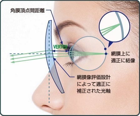為了消除這種現象, 「視網膜圖像評估設計」是一種預先計算以便準確地形成通過預測的光軸的圖像並進行最佳校正的方法。