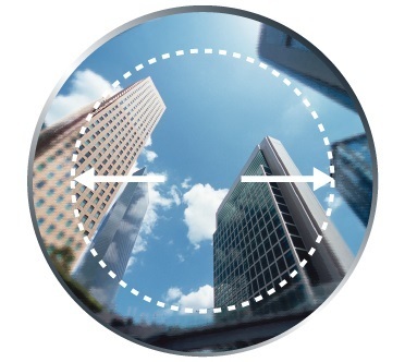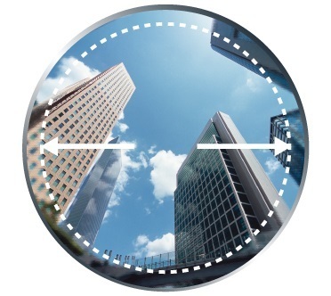 隨著度數的增加,視野會變窄,周圍區域會變形,但是非常適合帶有曲線等的幀。