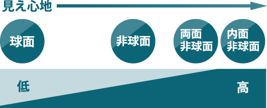 高規格鏡片設計有兩種類型:非球面內面設計(其中鏡片表面為球形,而背面為非球面)和雙面非球面設計(其中鏡片的兩個表面均為非球面)。