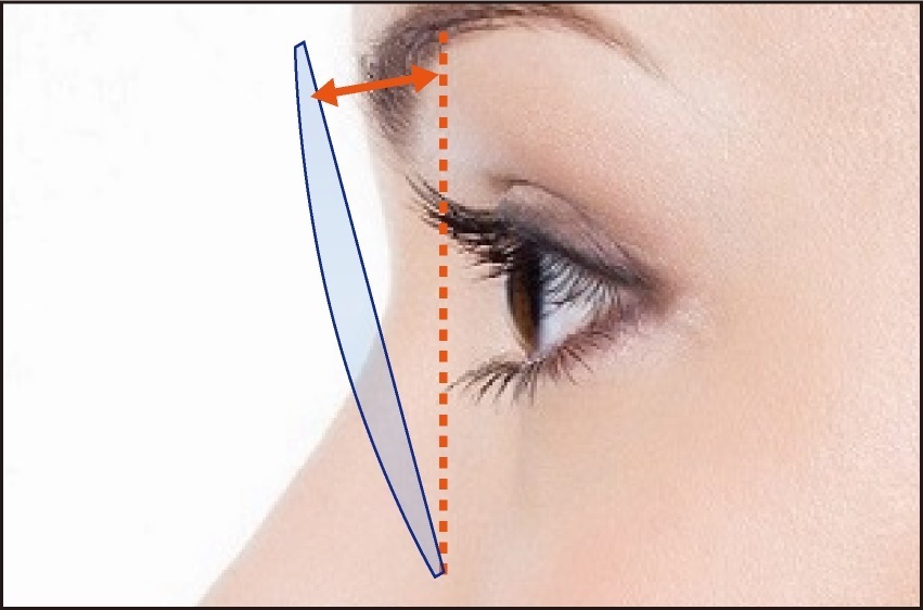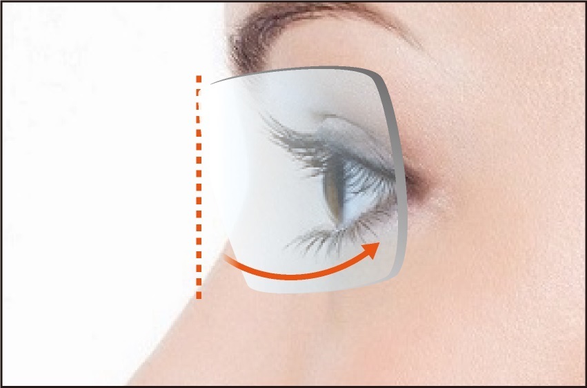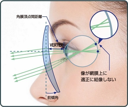 普通眼鏡架的傾斜角度適中,因此更易於觀察。但是,當您看著物體時,眼睛一直在移動,因此光線與鏡片成一定角度入射。結果,來自晶狀體的光線不能正確地成像在視網膜上。