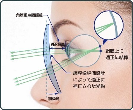 為了消除這種現象,「視網膜圖像評價設計」是預先計算以使通過預測的光軸的圖像準確地形成圖像並進行最佳校正的方法。