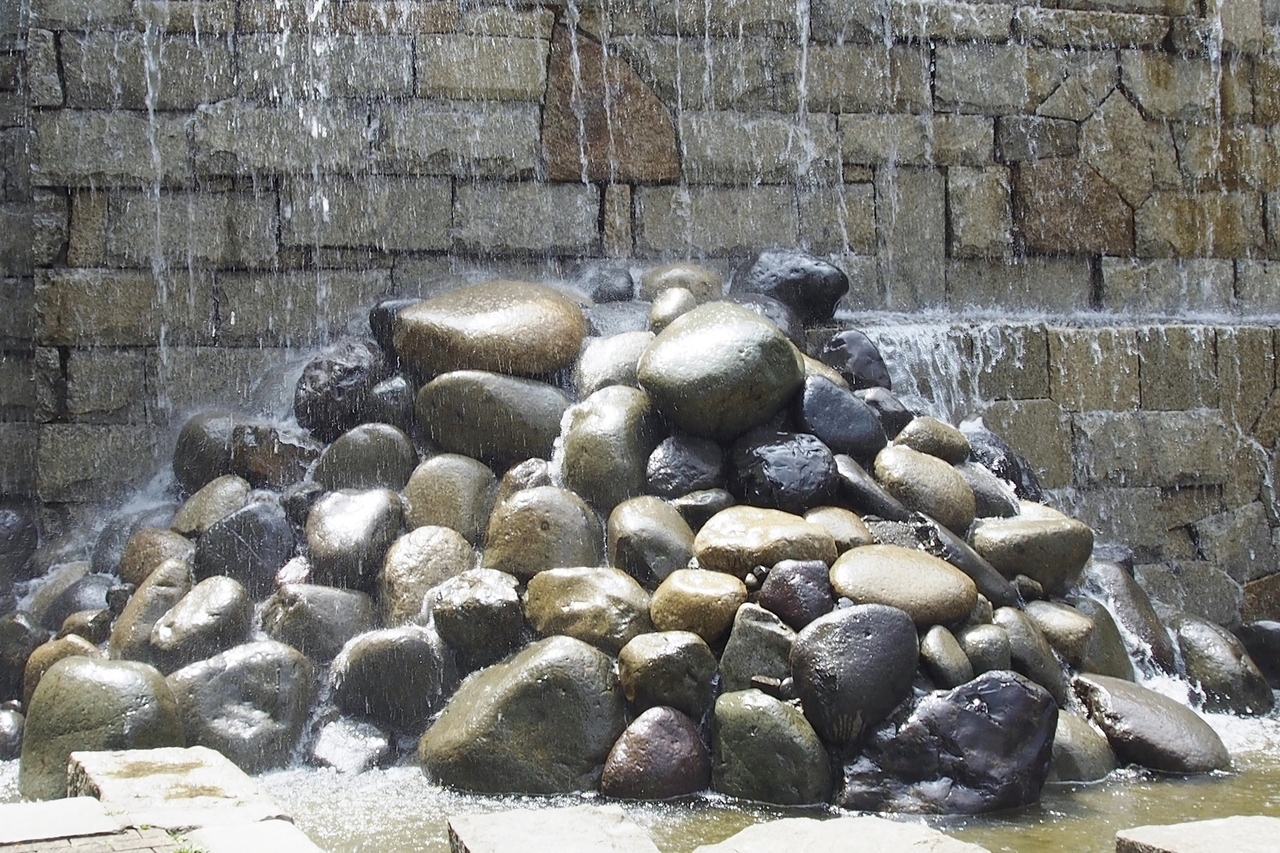 在照片②中,偏光鏡消除了由於飛濺而引起的光的不規則反射,並且可以清楚地看到石頭的顏色。
