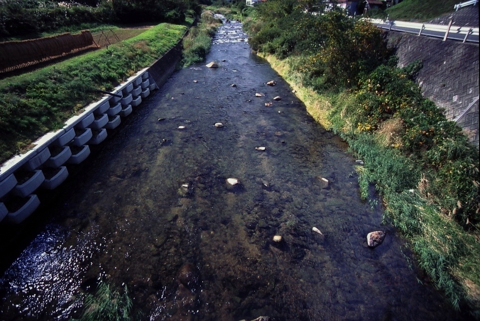用偏光鏡消除河面的反射,可以確認河底(照片②)。