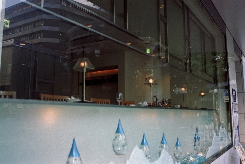 在照片①中,外部玻璃在商店玻璃中反射,從而很難看到商店內部。