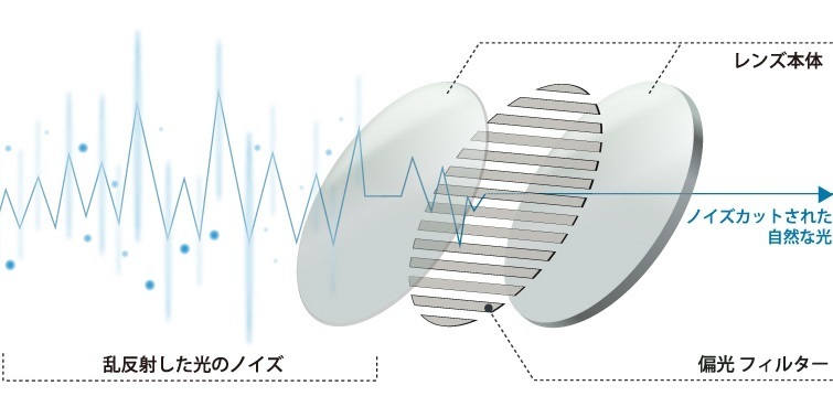 低濃度偏振濾光片抑制了光的閃爍並具有改善對比度的效果。※與實際的插圖色調不同。