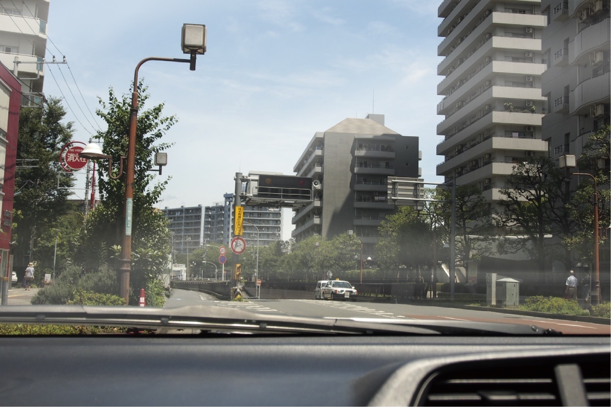 照片C:擋在擋風玻璃上的光線反射被消除,使視野清晰。