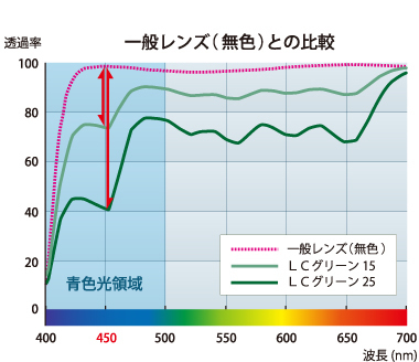 LCD色彩旨在有效地削減450 nm左右的波長,在該波長中,藍光最強地發射出藍色光(380 nm至500 nm區域),這在最近的研究中已引起人們對生物體的影響的關注。是一種特殊的顏色。
