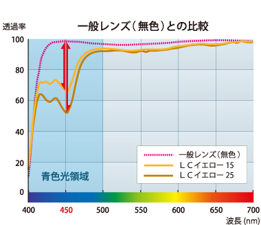 LC 黃色符合夜間駕駛的安全標準。它不會使波長下降到藍光區域之上,因此具有增亮視覺效果的作用,並且可以減少來自LED前燈的藍光,使其成為夜間駕駛的最佳顏色。