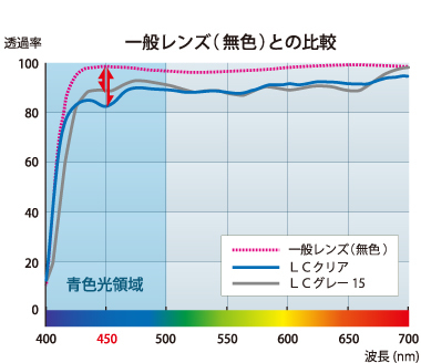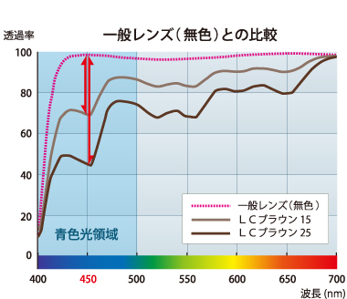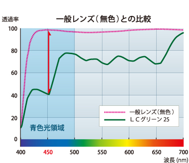 藍光在450 nm附近發射最強,對於PC鏡片來說,抑制此波長很重要。