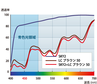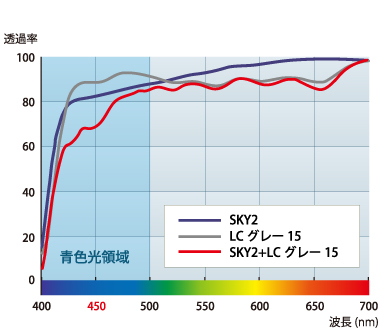□平均藍光截止率是在折射率為1.60(厚度2mm /度)的樣品上測得的380nm至500nm區域中每1nm的透射率的平均值。