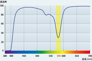 由於可以精確地阻隔感覺最刺眼的585 nm附近的波長(黃光),因此可以清晰地看到紅色和綠色,並且可以恢復老年人視野中的美麗色彩。