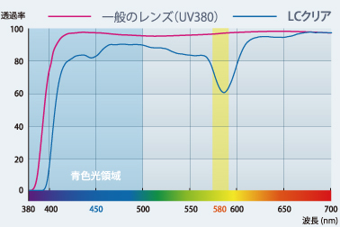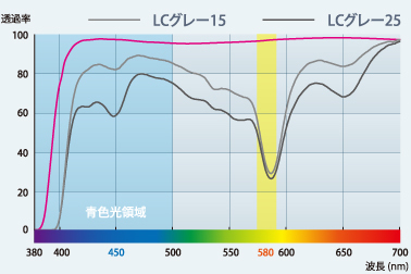 除了具有約585nm的黃光(這是Netspec 度的特徵)之外,還可以有效地消除約450nm的藍光。