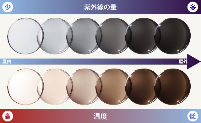 LCD暴露在紫外線下會改變顏色(濃度)。這是因為鏡片中包含的調光器(包含與紫外線發生反應的特殊分子)發生變化,並且鏡片的顏色(濃度)根據紫外線的量而發生變化。